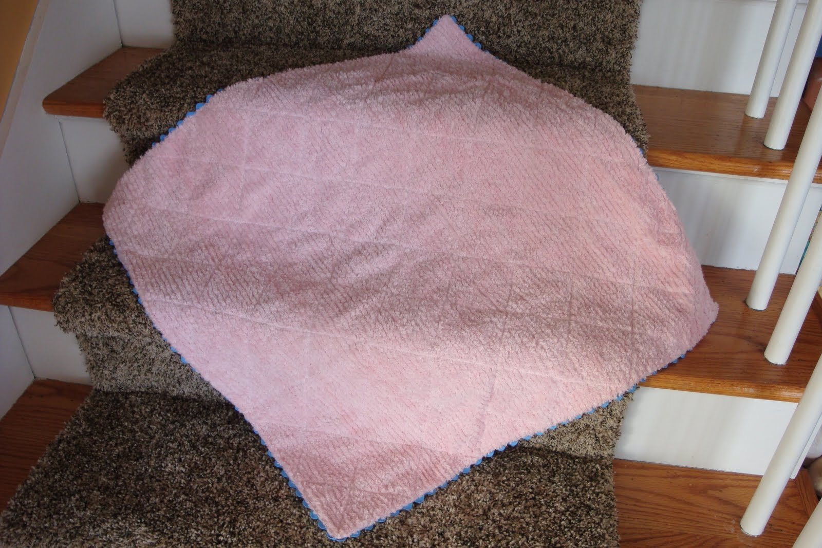 Allie needed a stroller quilt. Regular quilts are just too big for the stroller or the car seat. This one is the perfect size. It's about 27 x 27, give or take an inch. I made it from a snippets charm pack and backed it with pink chenille. No need to add batting, because the chenille is just thick enough. I added rickrack to the edges. I love it!